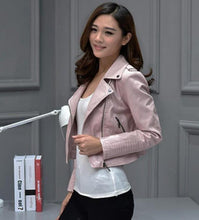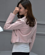 Womens Street Style Faux Leather Jacket Comes in Pink and from Small to Medium.