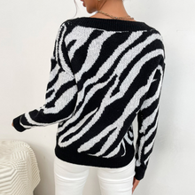 Womens Zebra Print Round Neck Sweater